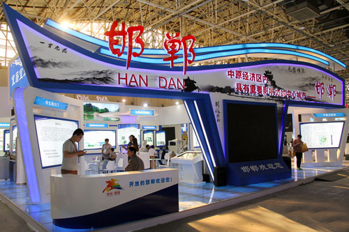 邯鄲館在眾多展館中,可謂“顏值”超高,無論場(chǎng)館建設(shè)還是展示內(nèi)容都極其豐富。邯鄲作為中華文明的重要發(fā)祥地之一,具有非常深遠(yuǎn)的歷史。從邯鄲館外部可以看出,一言九鼎,完璧歸趙,都像在訴說邯鄲的歷史與文化。今年518洽談會(huì),邯鄲主打“中原經(jīng)濟(jì)區(qū)內(nèi)具有重要影響力的中心城市”從多個(gè)方面令世界了解邯鄲,走進(jìn)邯鄲。