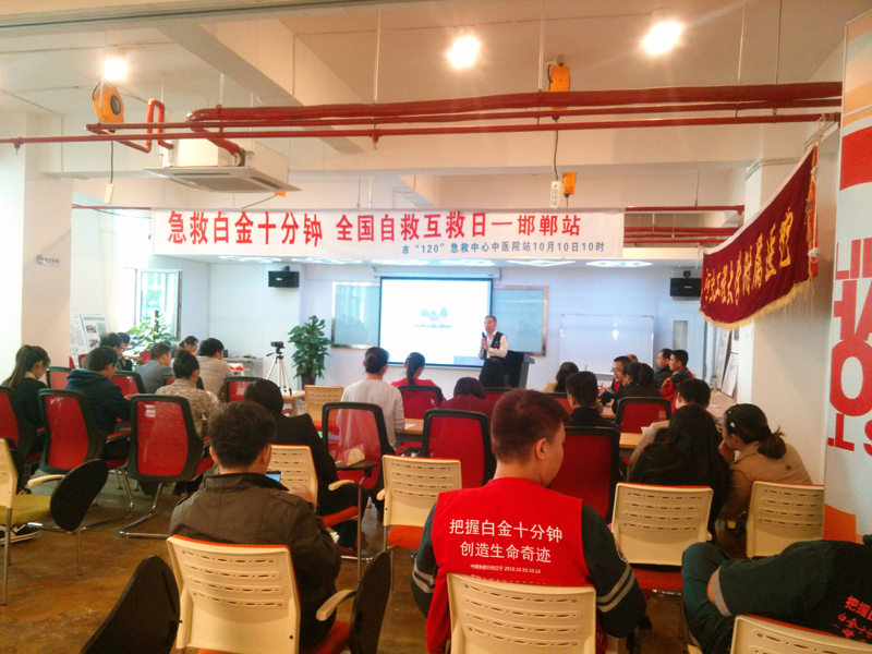 2015年10月10日,由邯鄲市中醫(yī)院、市120急救中心、河北工大附院、王永春健康小屋在邯鄲高科創(chuàng)客空間二樓開展“急救黃金十分鐘,全國自救互救日”科普活動(dòng),活動(dòng)于10時(shí)10分正式開始。