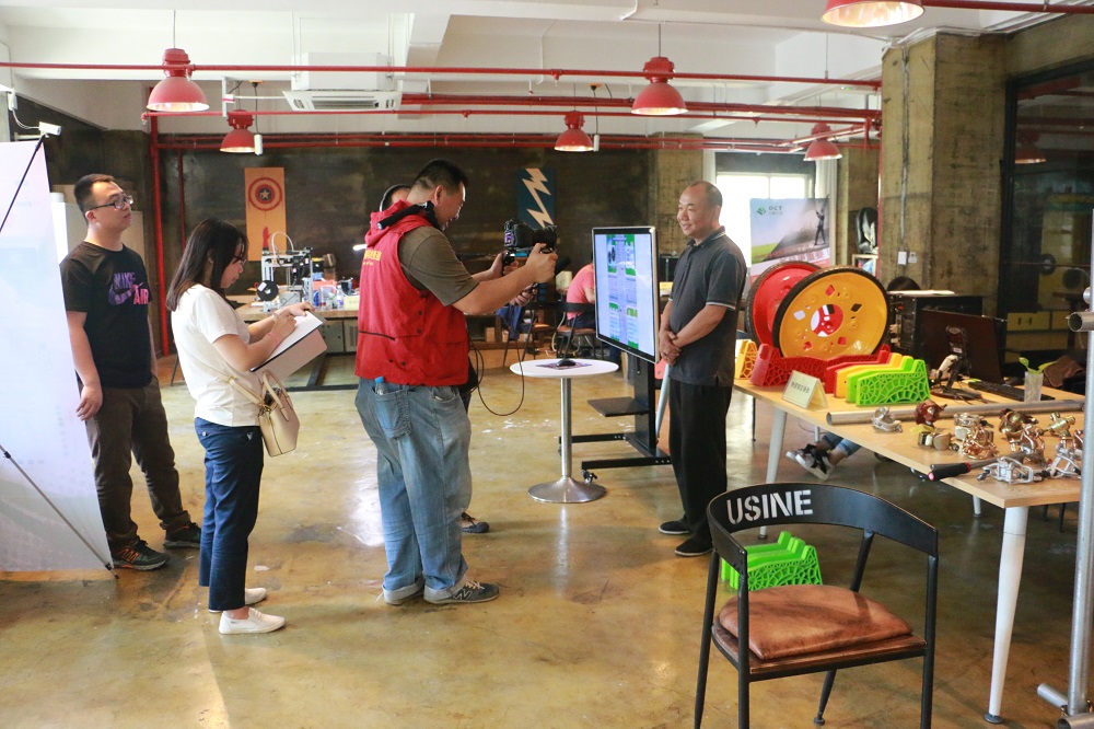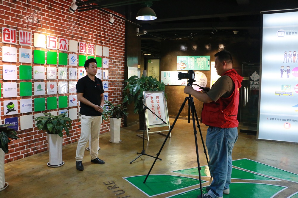 采訪人員首先在DCT創(chuàng)客空間一層創(chuàng)客書吧、項(xiàng)目路演大廳和人才交流展示區(qū)進(jìn)行了拍攝,還采訪了DCT創(chuàng)客空間工作人員周承樸,周承樸介紹了DCT創(chuàng)客空間的服務(wù)理念以及今后將更加積極探索優(yōu)秀的孵化模式,助力更多創(chuàng)客實(shí)現(xiàn)夢想。