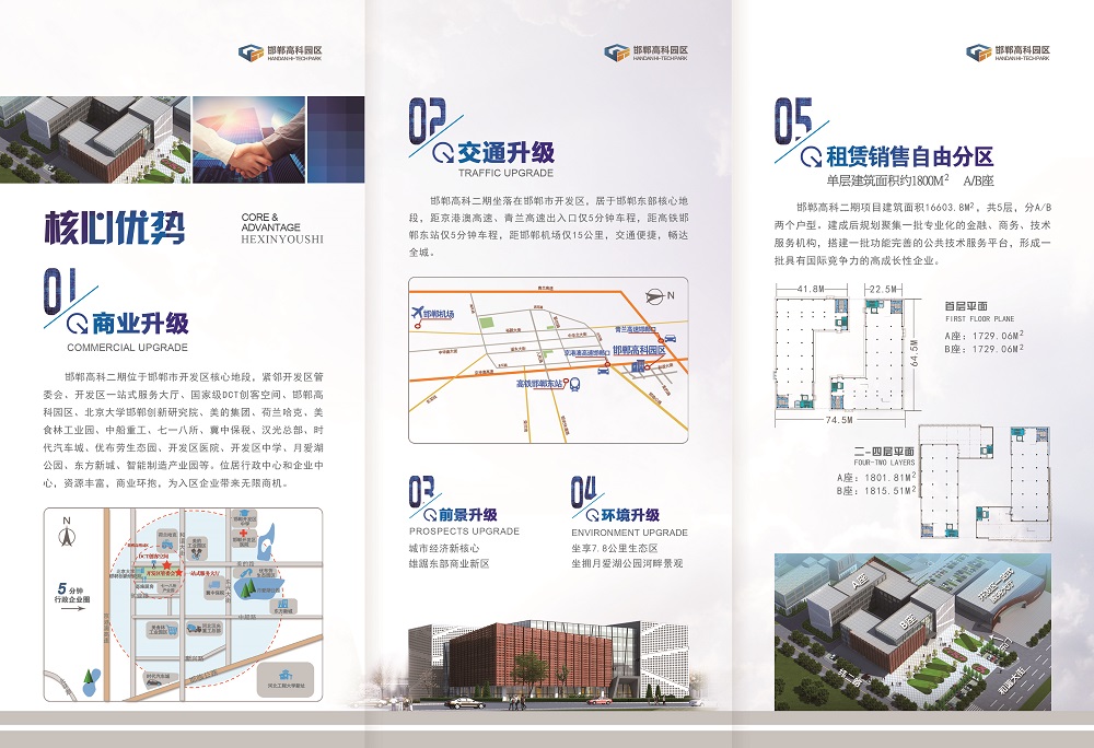 邯鄲高科二期項目建筑面積16603.8m,共5層,分A/B兩個戶型。建成后規劃聚集一批專業化的金融、商務、技術服務機構,搭建一批功能完善的公共技術服務平臺,形成一批具有國際競爭力的高成長性企業。